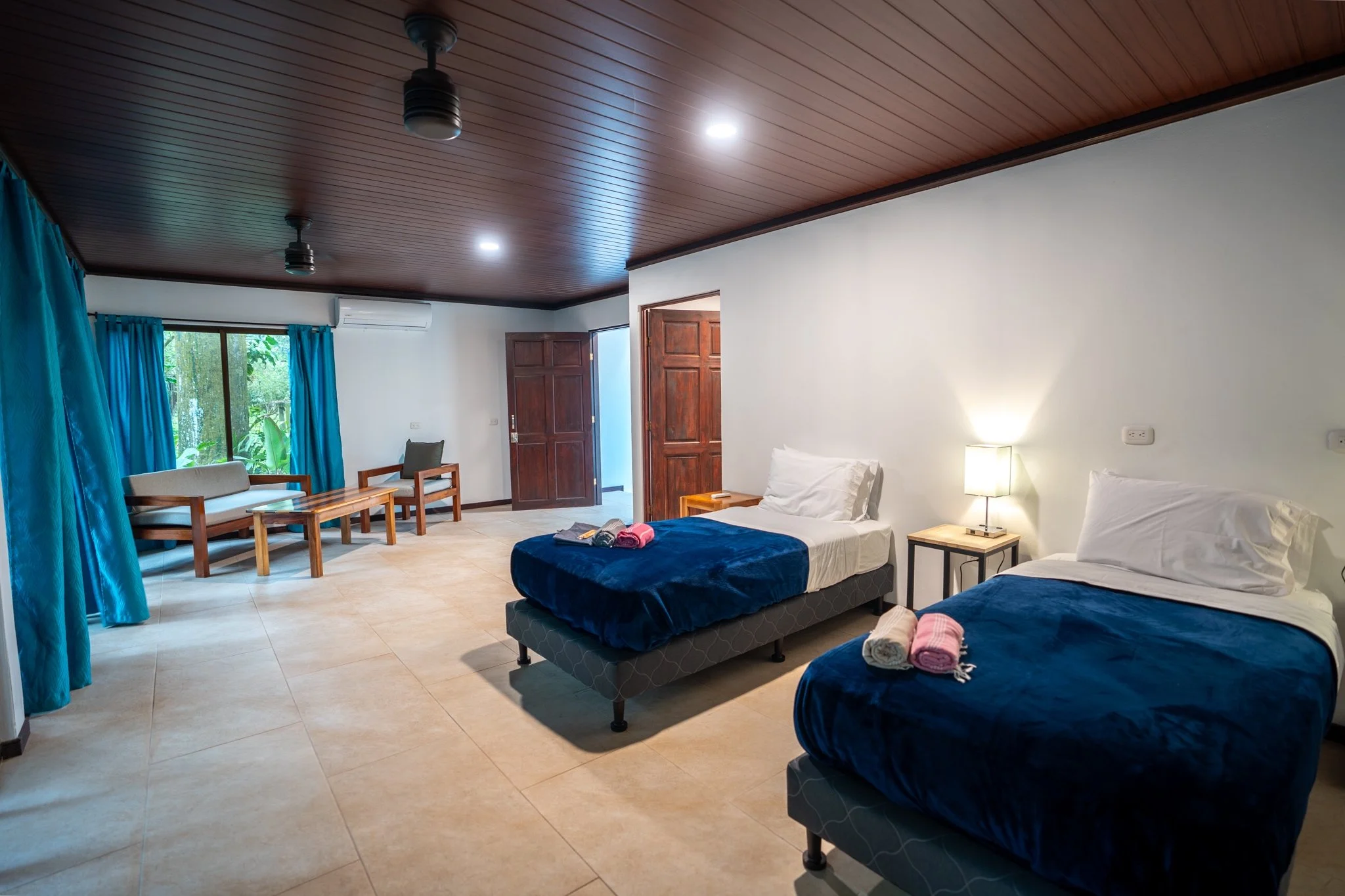 Our most spacious option, the triple rooms welcome three guests in a light and airy setting. Outfitted with comfortable bedding, air conditioning, fans, and sustainable bath amenities, these rooms create a sense of community and camaraderie while still providing restful comfort after full days of exploration.